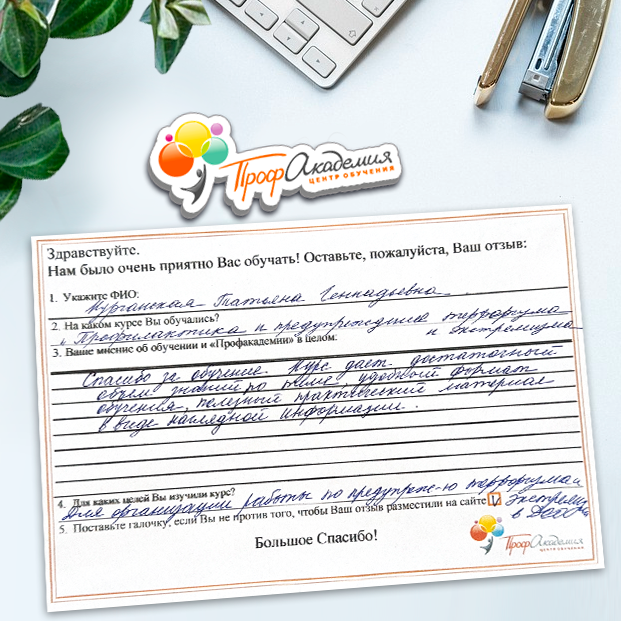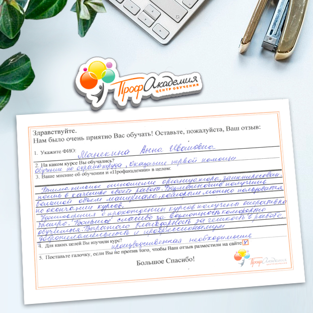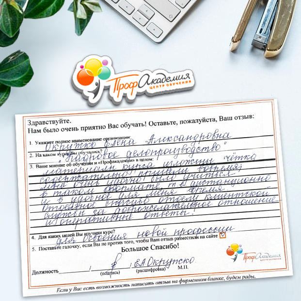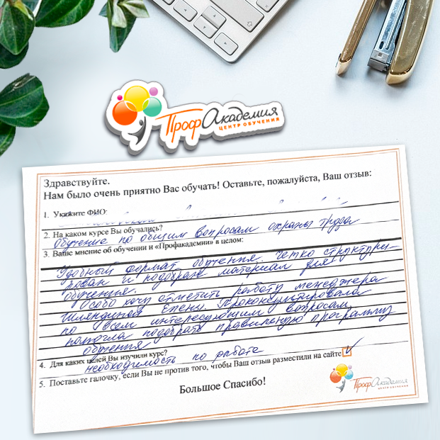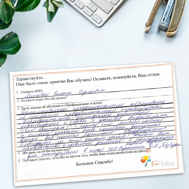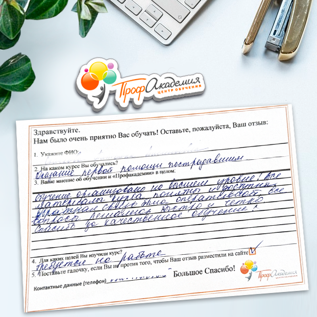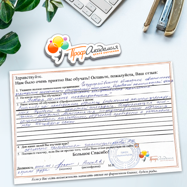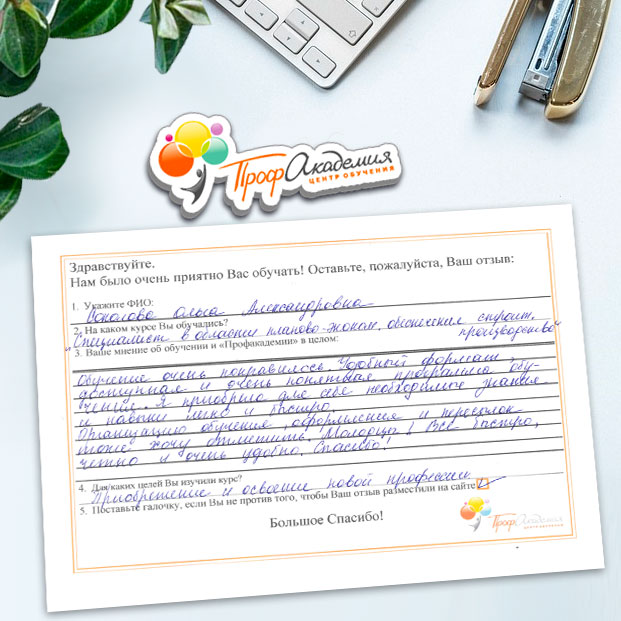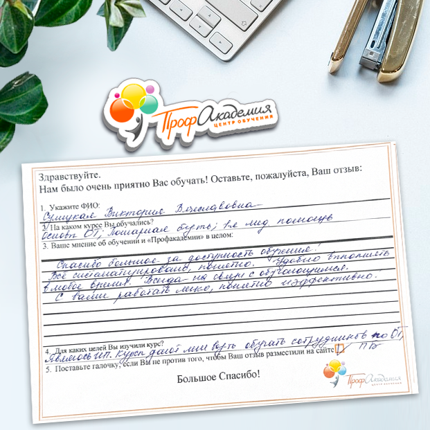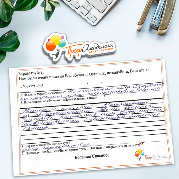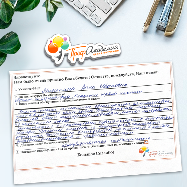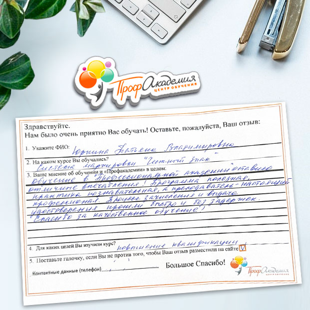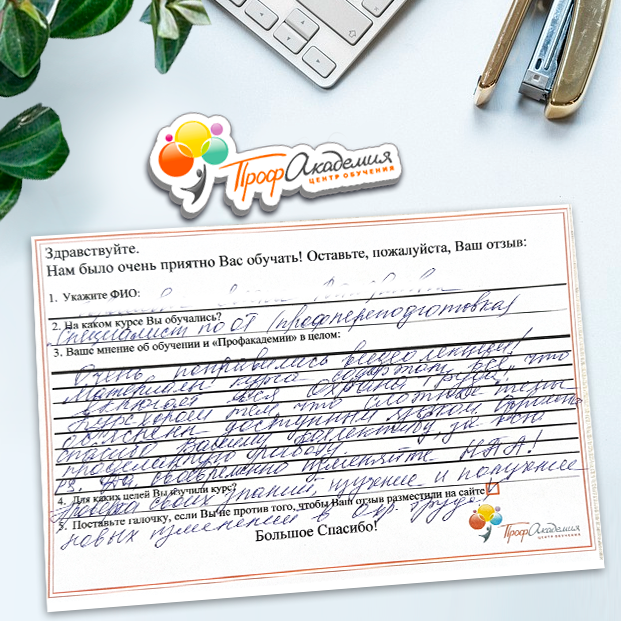 Очень приятно обучаться в "Профакадемии", все очень точно, быстро, внятно. Получила свое удостоверение, спасибо большое.